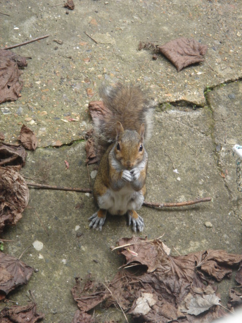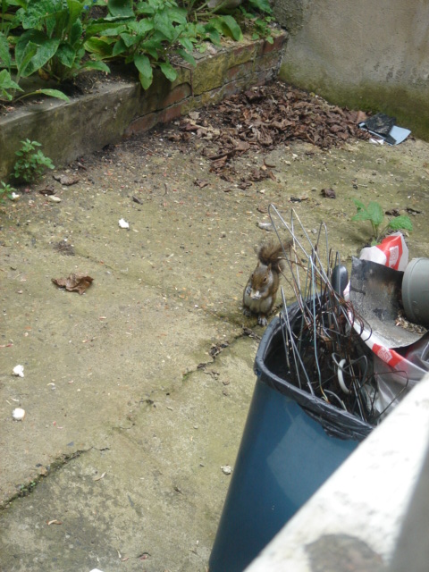 そして、大きな音がしたと思ったら、この庭では初めての、リス。