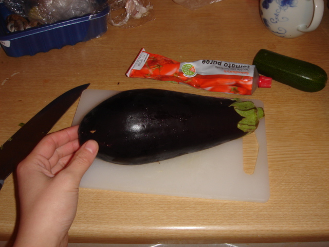 この前買ってきたナス。手と比べるとわかるけど、日本のものと違って、大きい。