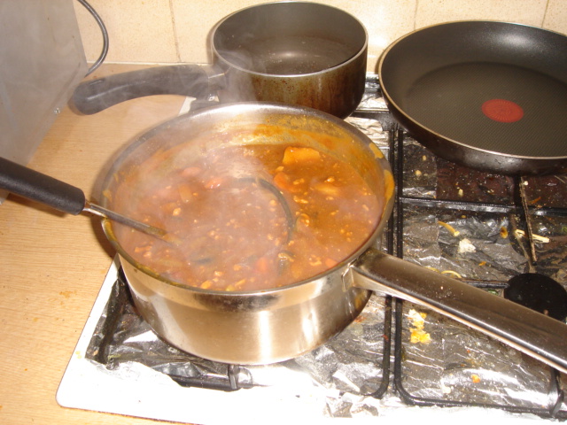 並々と作ってしまった。こういう状態のことを、心の中でいつも「魔女鍋」と呼んでいる。だって、かき混ぜてたら気分出る…(笑)
