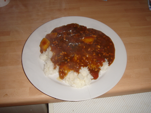 きのうと同じ材料だけれど、ナス、ズッキーニ、玉ねぎ、じゃがいも、ニンジン、ひき肉など。美味しかった。