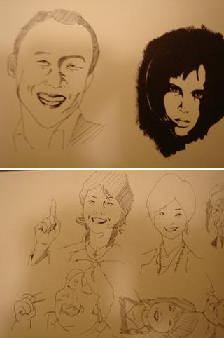 テレビに出ている人の顔をお借りして、練習。そうでない人も混じっているけれど。似てないのがどうでもいいくらい、似顔絵を描くのが面白い。練習してたらコツとか分かるようになる、といいな。