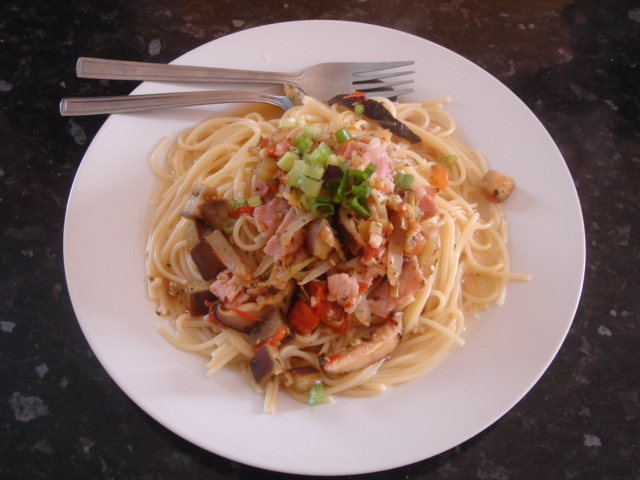 もたもたしていたらすぐにお昼になったので、今日はまたスパゲティを作った。