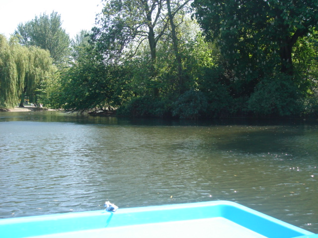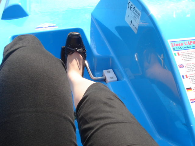脚でこぐ形のボート。おぉ。揺れる。怖い。楽しい。すっごく爽快!深さの分からない水の上にいるという不安がいっそう面白さを駆り立てる(笑)実際ボートはとても大きいので危機感は本当はまったくないのだけれど、そうやって自分を煽って楽しむことができるタイプの人間である。