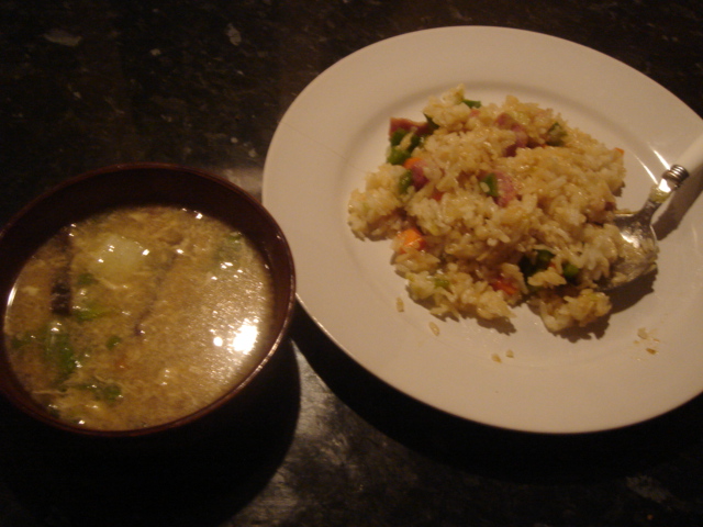 盛り方が非常に乱雑だけど、炒飯とスープ。