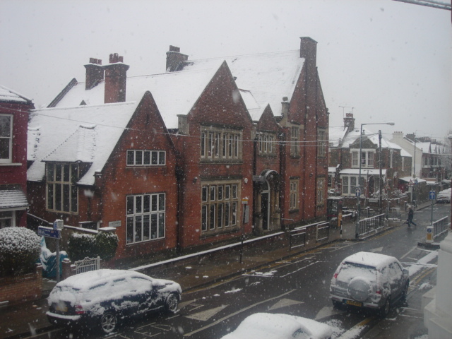 家の目の前の図書館。真っ白。3年くらいロンドンにいるけれど、今年(今日)が一番積もった。それにしても12月から3月も通り越して、4月にこれだけ降るなんて。