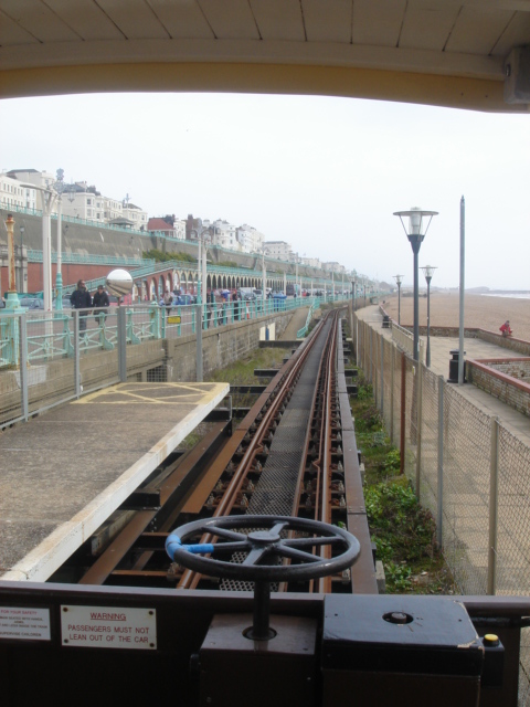 浜で一通り騒いだあと(「海だよ!」とか「ヒトデだ!」とか)、海岸沿いにある、世界で一番古いと言われる(1883年開設)エレクトリック・レイルウェイに乗った。運賃は往復30分ほどで2,5ポンド。
