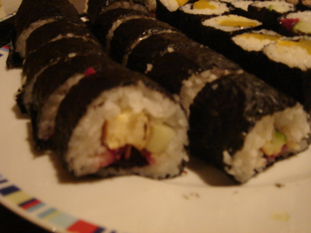 夜は、巻き寿司を作った。日本にいた頃はお寿司はあまり好きではなかったのに、何の変化だろう。以前にたくあんや干瓢を買っておいたので、今日こそは、と思い作り始める。時間がかかったけれど、美味しそうにできた。