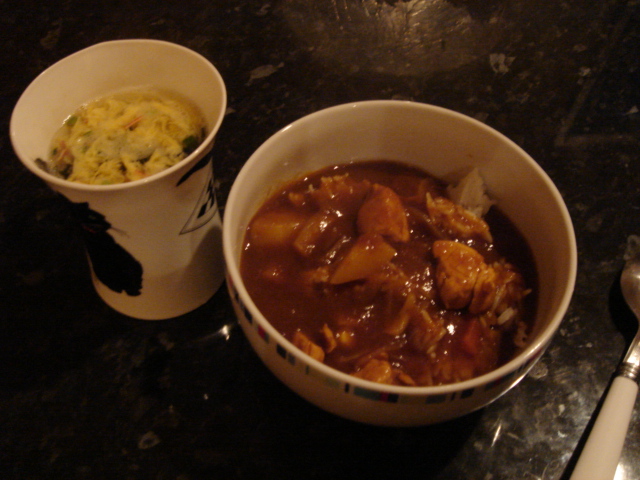食べるのが面倒だったけれど、少しお腹がすいたのできのうカレーを食べる。…美味しい。