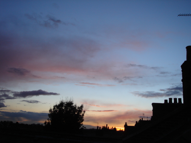 今日は雨が降ったりやんだりだったけれど、夕焼けはとてもきれいだった。ターナーの空のようだ。