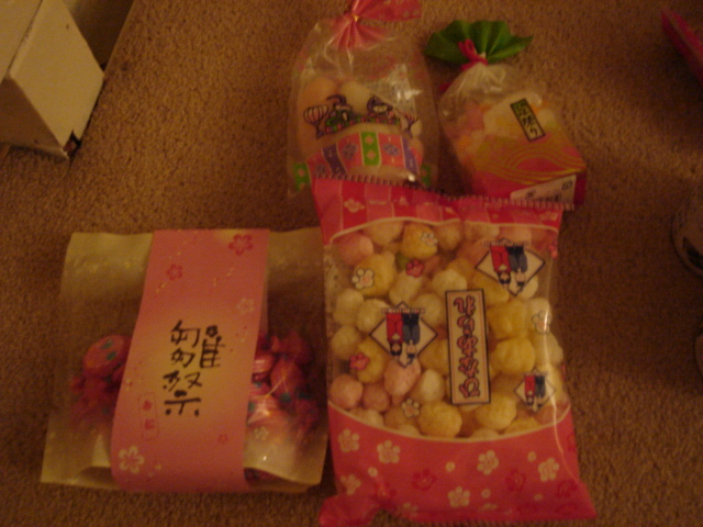 数々の雛祭お菓子。そうか、今日は3日だった。この前の閏日をスルーしたので、雛祭は逃さない(意味不明)。大好物の金平糖があった。わぁ。あと、