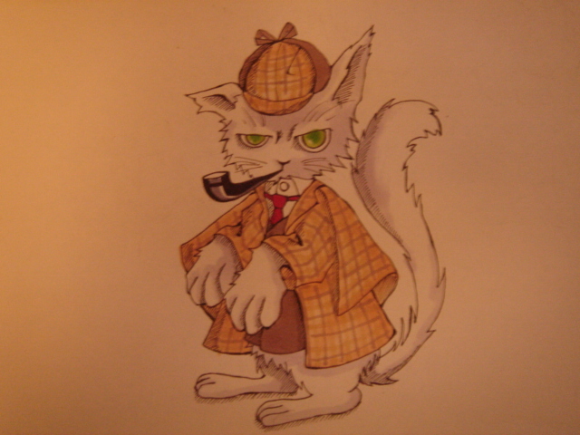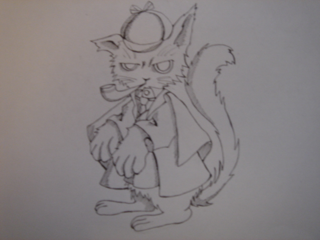 「仕方なく着せられたんだけどホントはすごく嫌」みたいな猫が描きたかったけど、フツーに探偵として悩んでる感じになった。