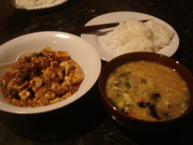 夜は、酸辣湯(スワンラータン)と麻婆豆腐と、さつまいも(中はオレンジ色…)を煮た。