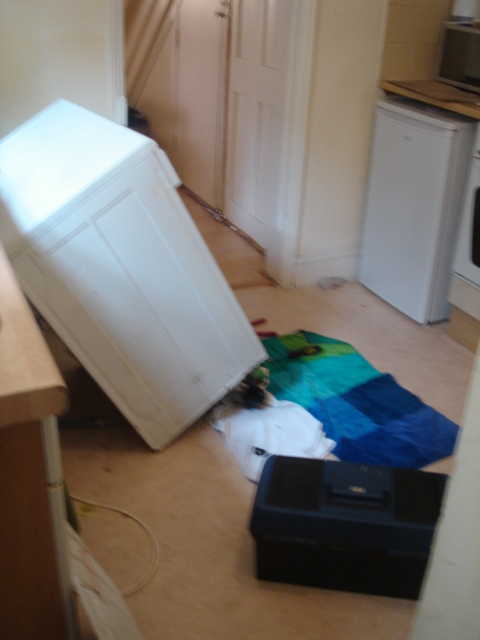 今日は一日家にいられるので、今のうちと思って、「徹底掃除」をまたすることに。しばらくして、玄関のチャイムが鳴る。「何かの修理かも」と直感があって、案の定、私くらいの大きさのタンクを抱えた人が、いた。この前ガスの修理をしてくれた人だった。上の階でかなり水の出が悪いらしく、タンクを備える、と言う。このフラットにはベースメントがあって、別名開かずの地下、なのだけれど、そこで作業をしなければいけない、ということだった。